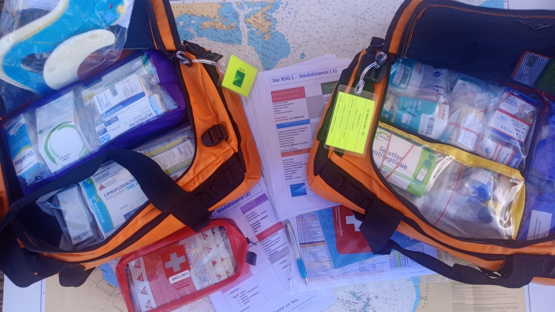Rien ne sert d’emmagasiner des caisses pleines de médicaments multiples glanés à gauche et à droite ; le résultat est le plus souvent décevant : beaucoup de doublons et certainement des produits indispensables manquants. Le contenu doit donc être structuré et respecter scrupuleusement les listings préétablis adaptés à l’éloignement tels que ceux proposés par le Centre de Consultation Médical Maritime de Toulouse (CCMM).